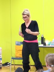 Nach der Lesung stellte sie sich den Fragen der Kinder, die so vielfältig waren wie die Kinder selbst. Sie reichten von „Wie viele Bücher haben Sie bereits geschrieben?“ (20 verschiedene Titel), über „Was ist ihr Lieblingsbuch von denen, die sie geschrieben haben?“ (immer das aktuelle Buch) bis hin zu „Was essen sie am liebsten?“ (vieles, aber am liebsten scharf). Die Autorin beantwortete jede einzelne Frage, erzählte auch etwas über die Arbeit als Autorin, von ihren Erfahrungen und von der Wichtigkeit der Buchblogger. Und sie erwähnte auch, das Florentine bereits ihre Bücher rezensiert und sie interviewt hat 🙂